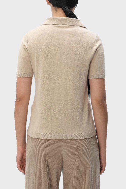 Детали: Женский бежевый джемпер-поло из шелка и хлопка Roncolo от Max Mara Weekend (Макс Мара Викенд). Отложной воротник, V-образный вырез, короткий рукав, классическая длина