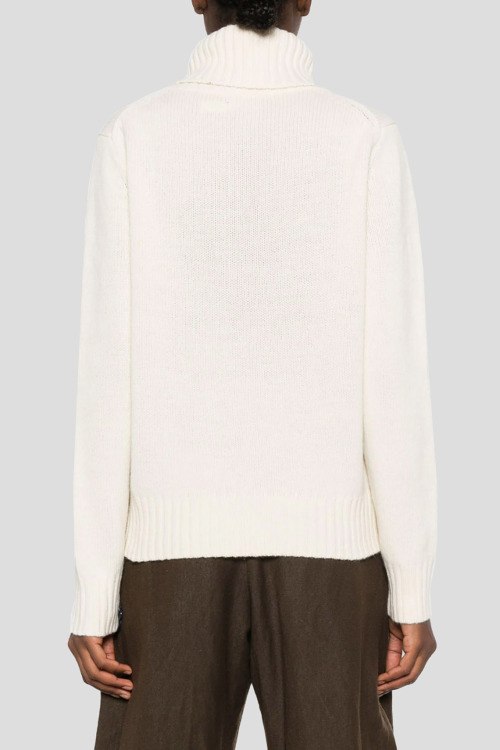 Детали: Женский бежевый джемпер из шерсти от Ralph Lauren (Ральф Лорен). Высокий воротник-стойка с отворотом, длинные рукава, трикотажная резинка на манжетах и по низу изделия