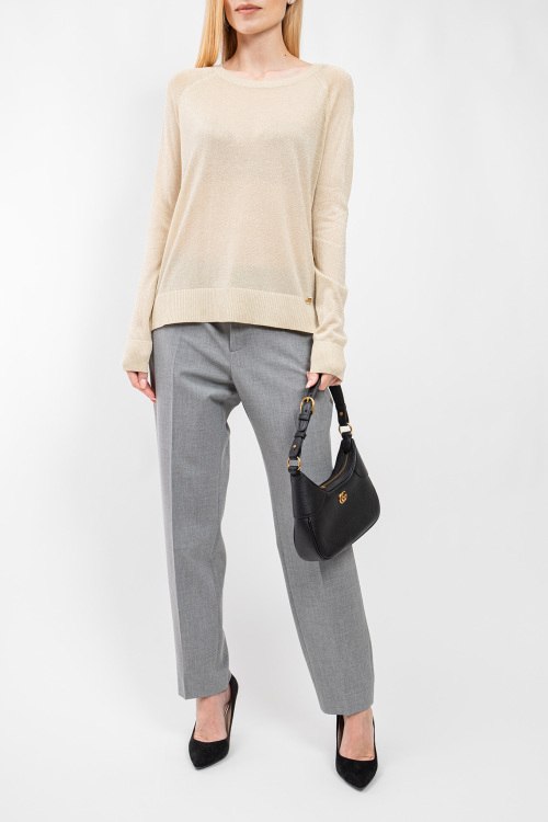 Женский бежевый джемпер из вискозы и хлопка от Roberta Biagi (Роберта Бьяджи). Дизайн с люрексом, нашивка с логотипом, круглый вырез горловины, классическая длина. Замеры для размера Uni: длина спереди: 65 см, ширина по груди: 54 см, ширина по талии: 51см, ширина по бёдрам 50, длина рукава: 54 см, ширина рукава: 16 см.