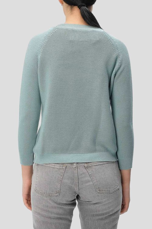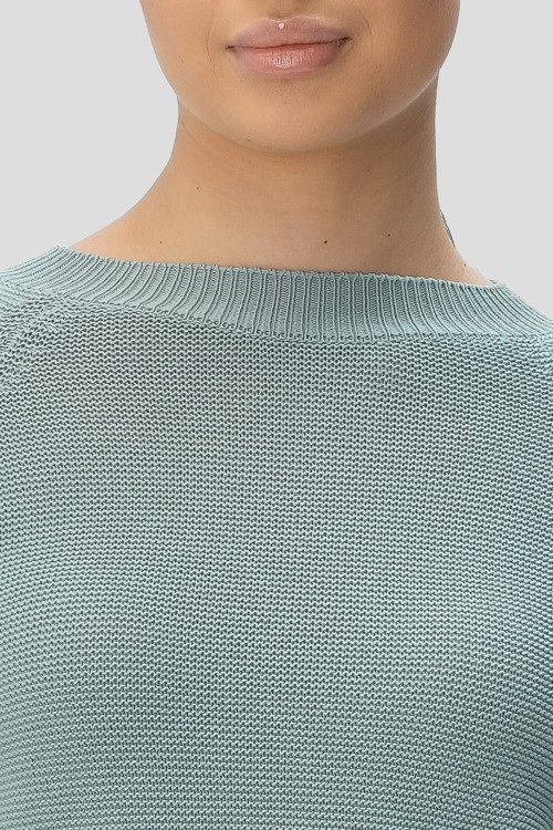 Детали: Женский бледно-бирюзовый хлопковый джемпер Linz от Max Mara Weekend (Макс Мара Викенд). Классическая вязка, вырез горловины "лодочка", манжеты и нижний край в рубчик