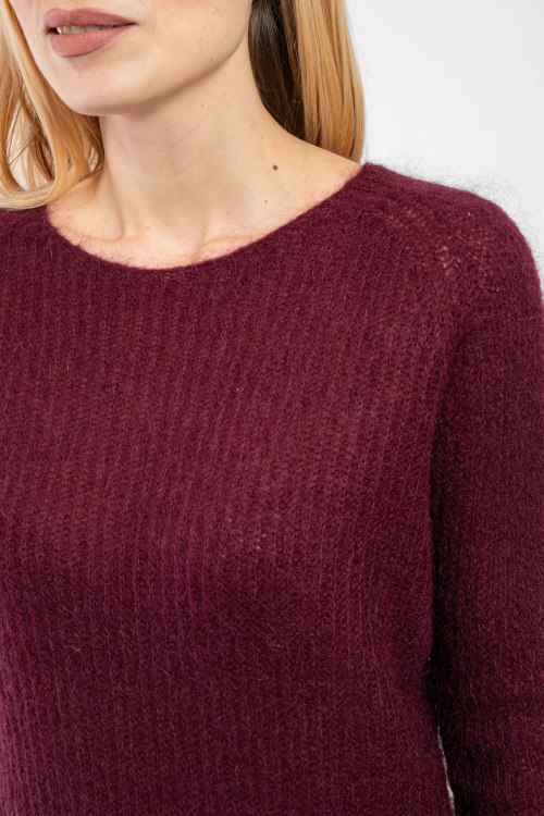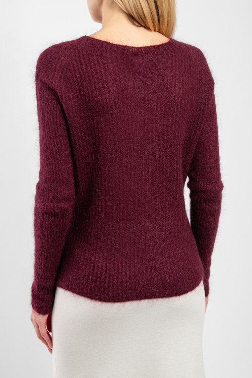 Женский бордовый джемпер из акрила и мохера от Kontatto (Контатто). Полупрозрачная модель, круглый вырез горловины, классическая длина.