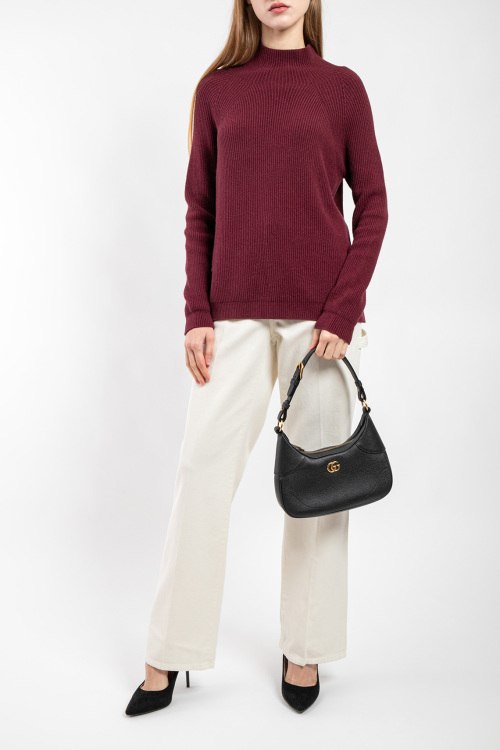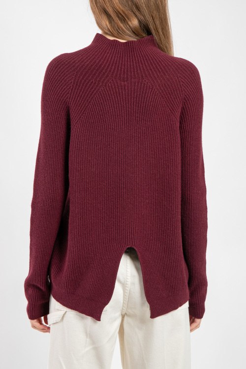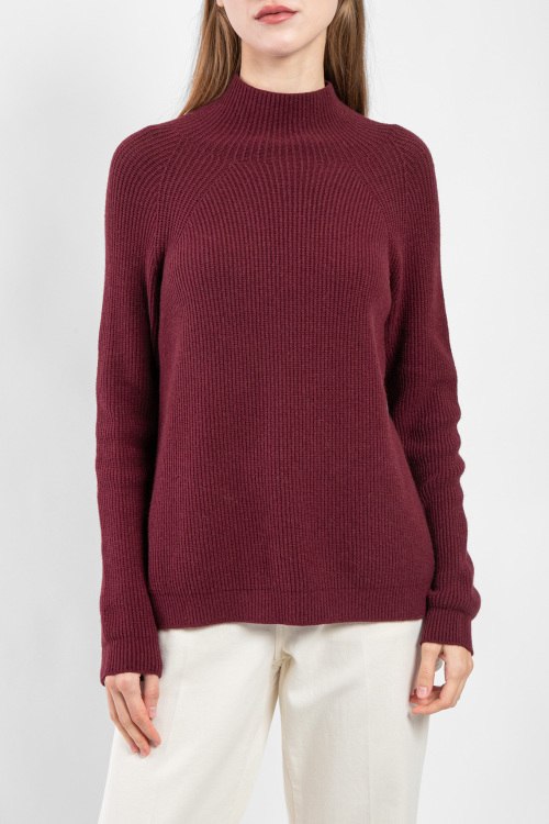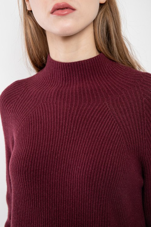 Женский бордовый джемпер из вискозы и ангоры от Kontatto (Контатто). Воротник-стойка, длинные рукава, удлиненная модель, сзади разрез. Замеры для размера: UNI длина: 61 см, ширина по груди: 48 см, ширина по талии: 48 см, длина рукава по внутреннему шву: 49 см, ширина рукава: 13 см.
