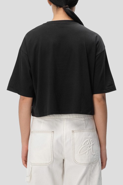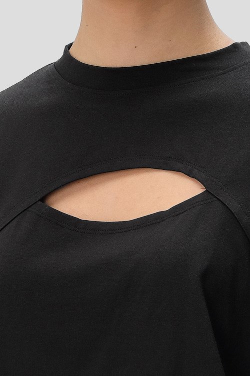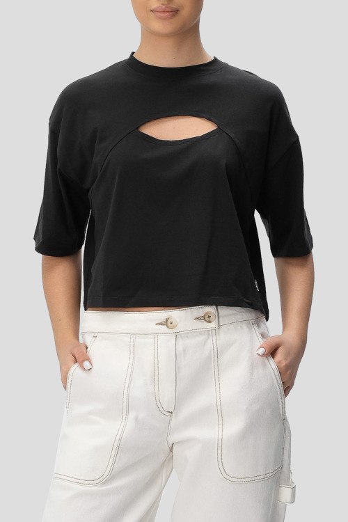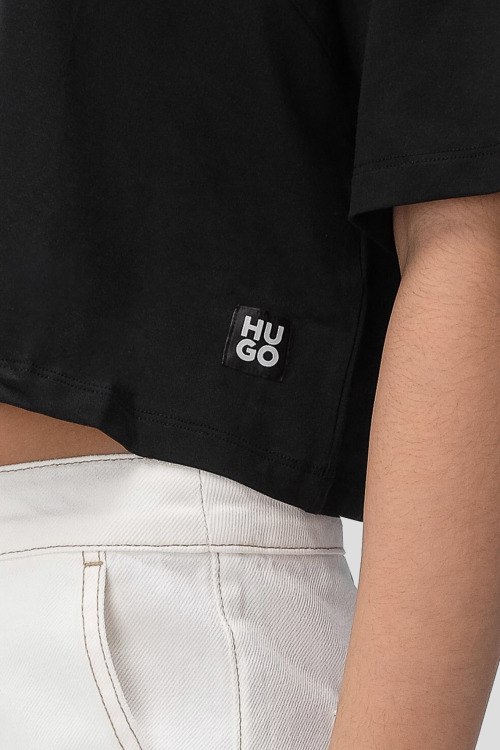 Детали: Женский черный джемпер из модала и хлопка Ivy от Hugo by Hugo Boss (Хуго бай Хуго Босс). Вырез на груди, круглый вырез горловины, короткий рукав, укороченная длина