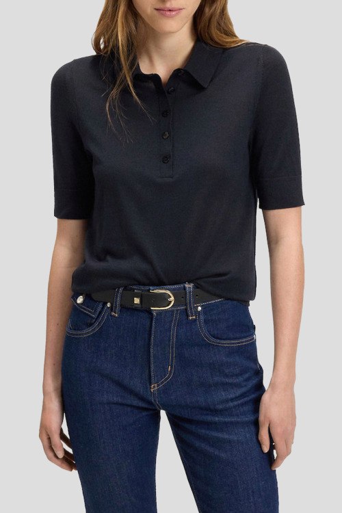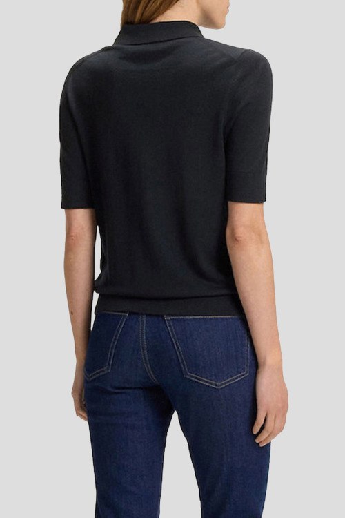 Детали: Женский черный шерстяной джемпер-поло Fidenka от Hugo Boss (Хуго Босс). Отложной воротник, застежка на пять пуговиц, короткий рукав, классическая длина