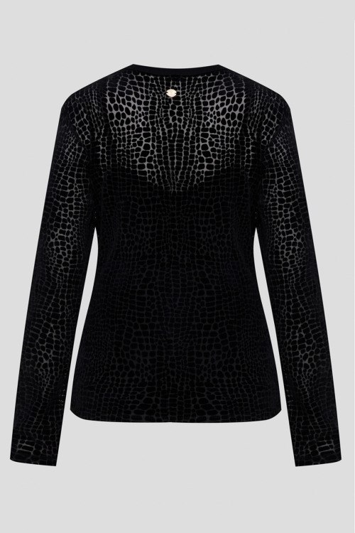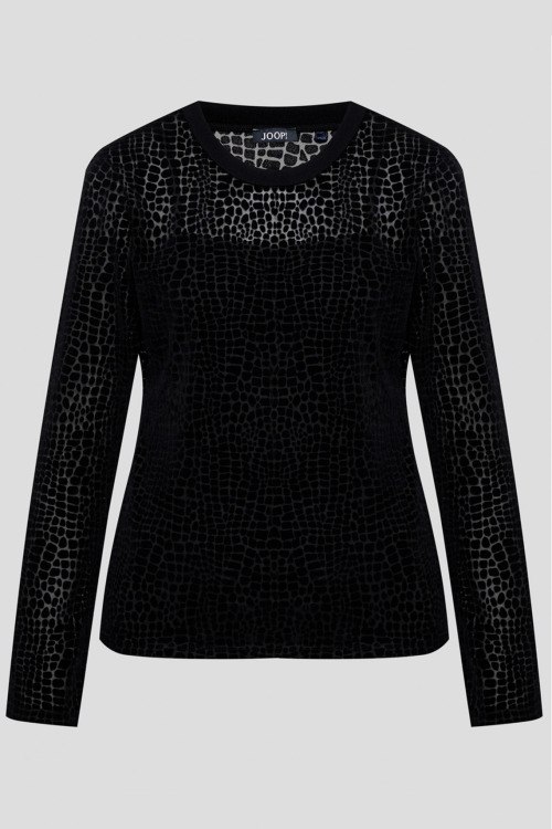 Детали: Женский черный лонгслив от Joop! (Йооп!). Леопардовый узор, круглый вырез горловины, классическая длина. Длина рукава: длинный, для размера 38 - 62 см, обхват груди: для размера 38 - 90 см, обхват талии: для размера 38 - 80 см, длина изделия по среднему шву спинки от горловины: для размера 38 - 60 см