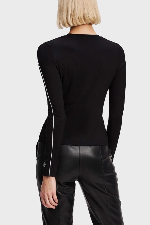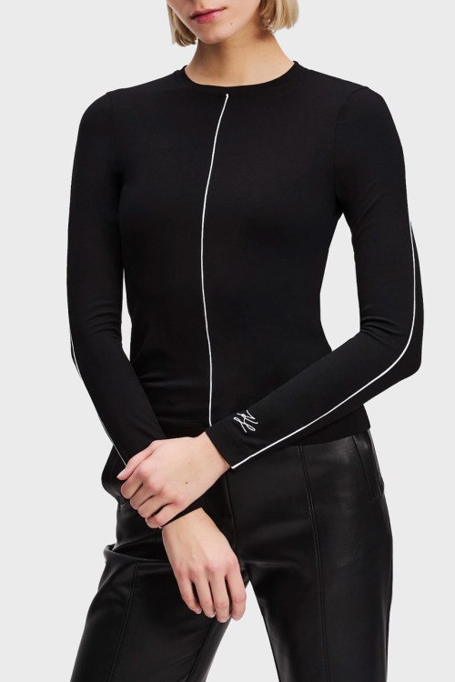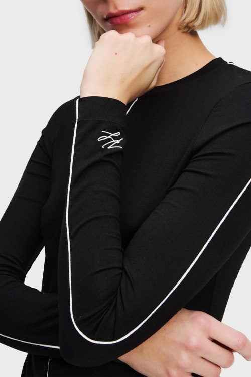 Детали: Женский черный джемпер и вискозы от Karl Lagerfeld (Карл Лагерфельд). Облегающий фасон, вышитый логотип на рукаве, круглый вырез горловины, классическая длина