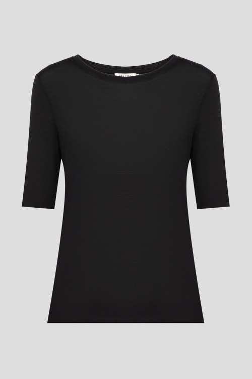 Детали: Женский черный джемпер из лиоцелла и хлопка от Maerz (Маерз). Круглый вырез горловины, короткий рукав, классическая длина. Длина рукава: короткий, для размера 36 - 30 см, обхват груди: для размера 36 - 86 см, обхват талии: для размера 36 - 86 см, длина изделия по среднему шву спинки от горловины: для размера 36 - 62 см