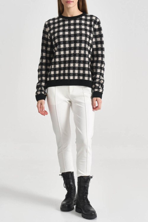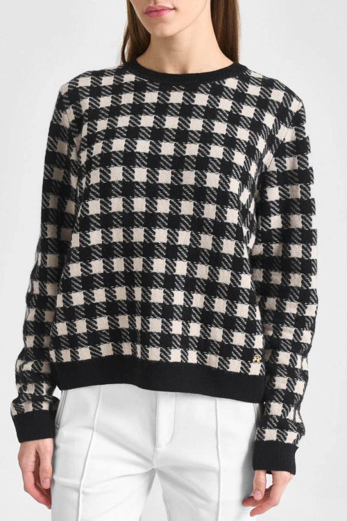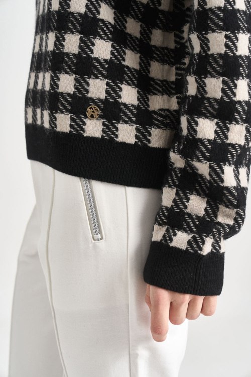 Детали: Женский черно-белый джемпер из шерсти и вискозы от La Martina (Ла Мартина). Модель с примесью кашемира, черно-белая клетка, круглый вырез горловины, классическая длина. Параметры модели: 83 см - 60 см - 90 см. Рост - 167 см. Размер на фото - 2