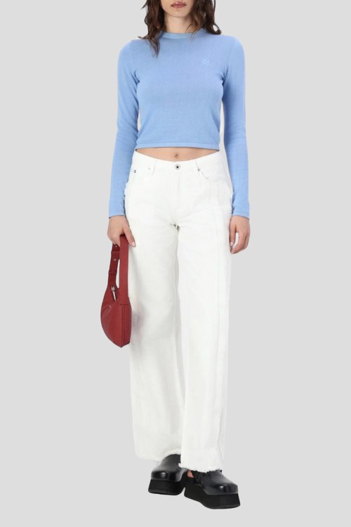 Детали: Женский голубой джемпер Scallia из хлопка от Hugo by Hugo Boss (Хуго бай Хуго Босс). Укороченная длина, круглый вырез горловины, длинные рукава, вышитый логотип бренда