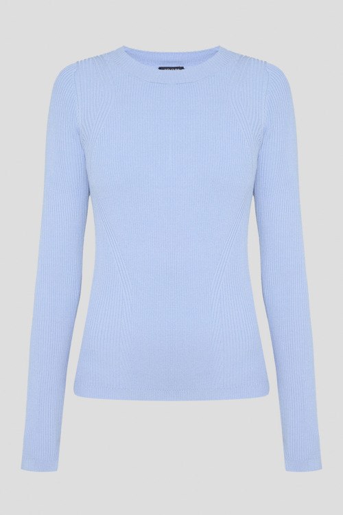 Детали: Женский голубой трикотажный джемпер от Joop! (Йооп!). Модель в рубчик, круглый вырез горловины, классическая длина. Длина рукава: длинный, для размера 36 - 65 см, обхват груди: для размера 36 - 66 см, обхват талии: для размера 36 - 62 см, длина изделия по среднему шву спинки от горловины: для размера 36 - 57 см