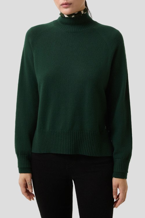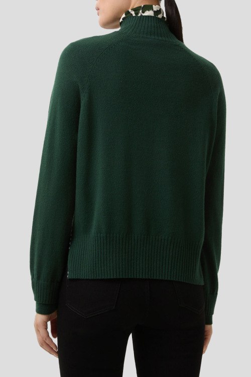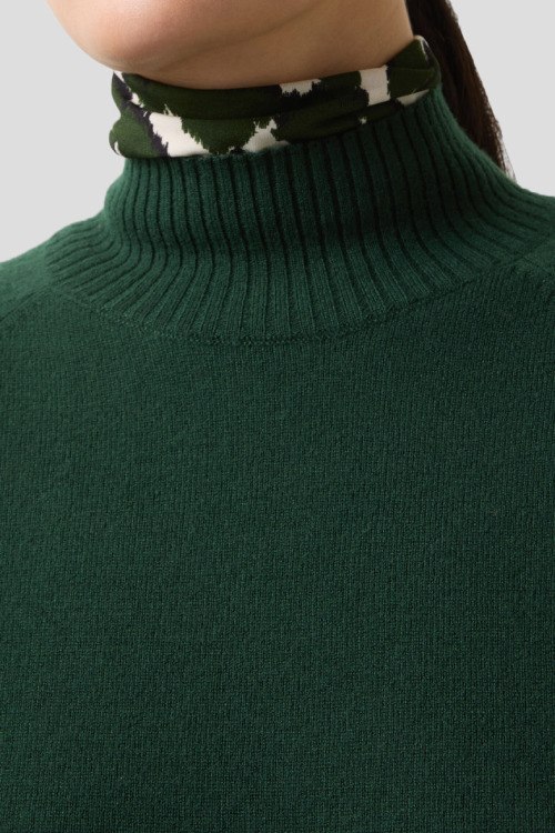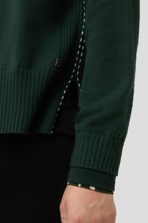 Детали: Женский изумрудный шерстяной джемпер Lysanne от Bogner (Богнер). Высокая горловина с контрастной вставкой, классическая длина, манжеты и нижний край в рубчик