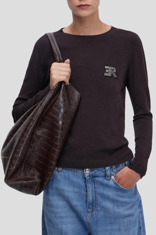 Детали: Женский темно-коричневый трикотажный джемпер от Ermanno Ermanno Scervino (Эрманно Эрманно Шервино). Модель с примесью ангоры, нашивка с логотипом на груди, круглый вырез горловины, классическая длина, манжеты и нижний край в рубчик