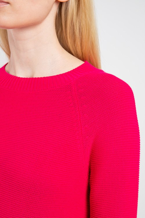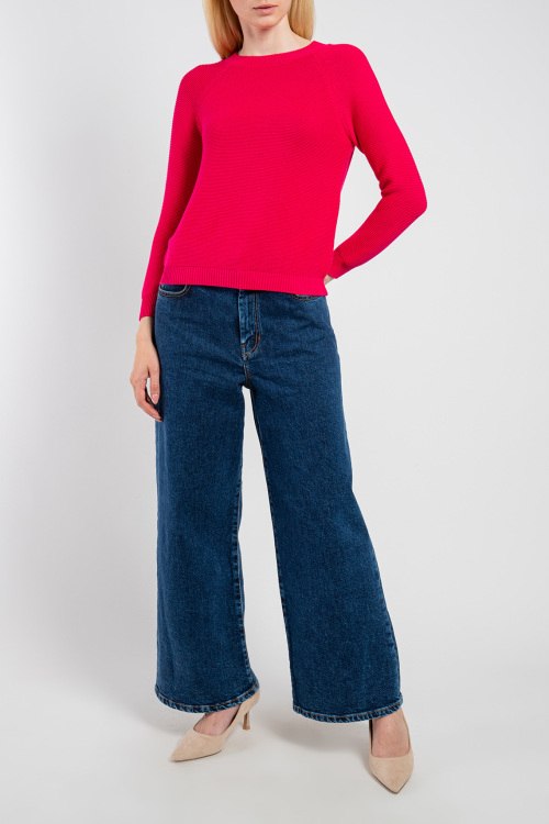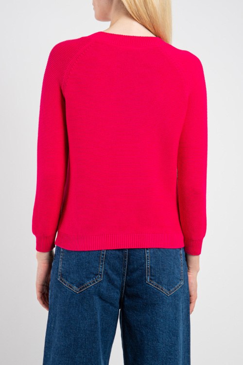 Детали: Женский малиновый джемпер из хлопка от Max Mara (Макс Мара). Классическая длина, круглый вырез горловины, длинные рукава, трикотажная резинка на манжетах и по низу изделия