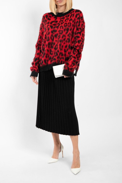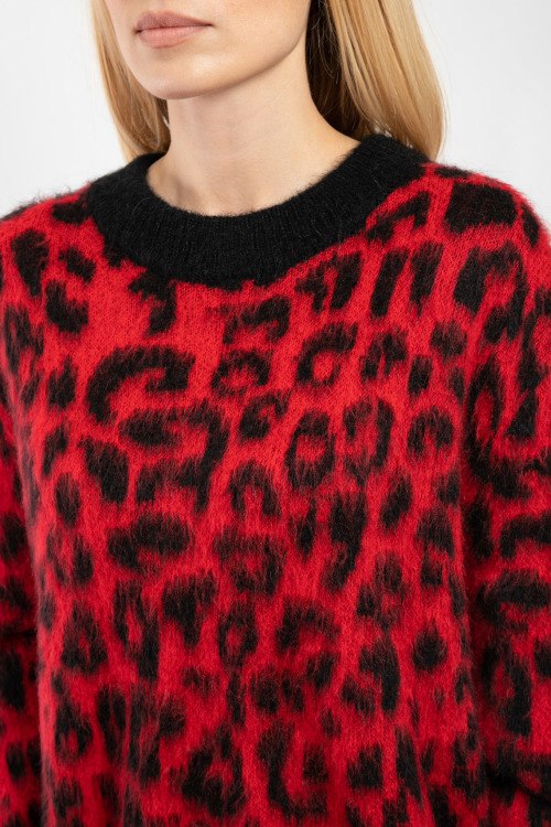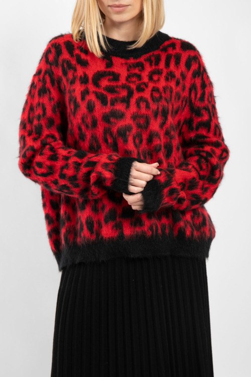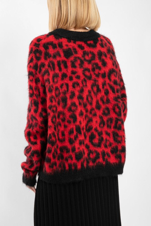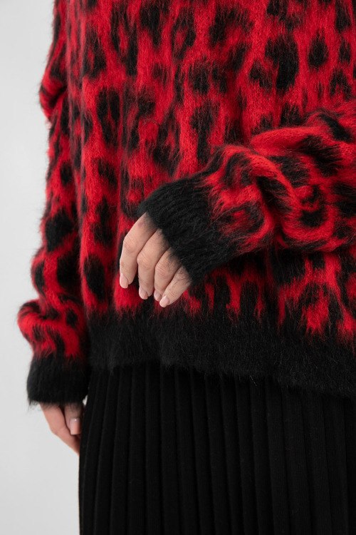 Женский красный джемпер из акрила и мохера от Kontatto (Контатто). Круглый вырез горловины, длинные рукава, дизайн с принтом, модель свободного силуэта. Замеры для размера UNI: длина: 64 см, ширина по груди: 71 см, ширина по талии: 69 см, длина рукава по внутреннему шву: 48 см, ширина рукава: 17 см.