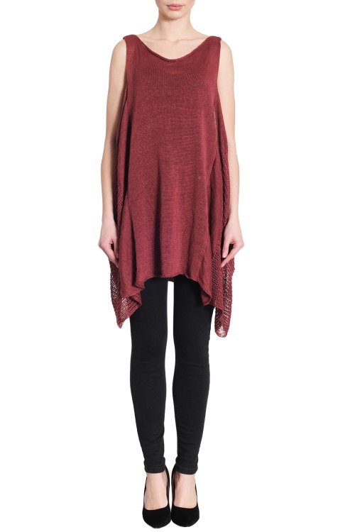 Детали: Однотонный пуловер асимметричного кроя и без рукавов. V-образный вырез декольте