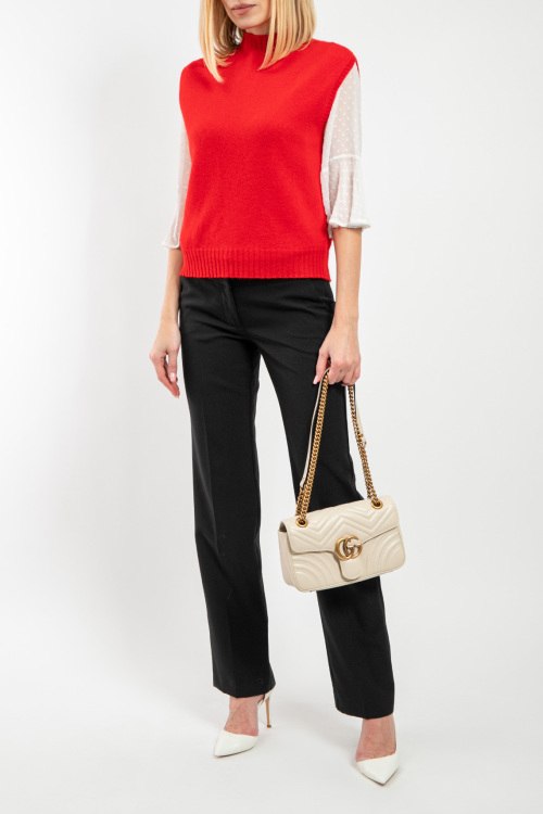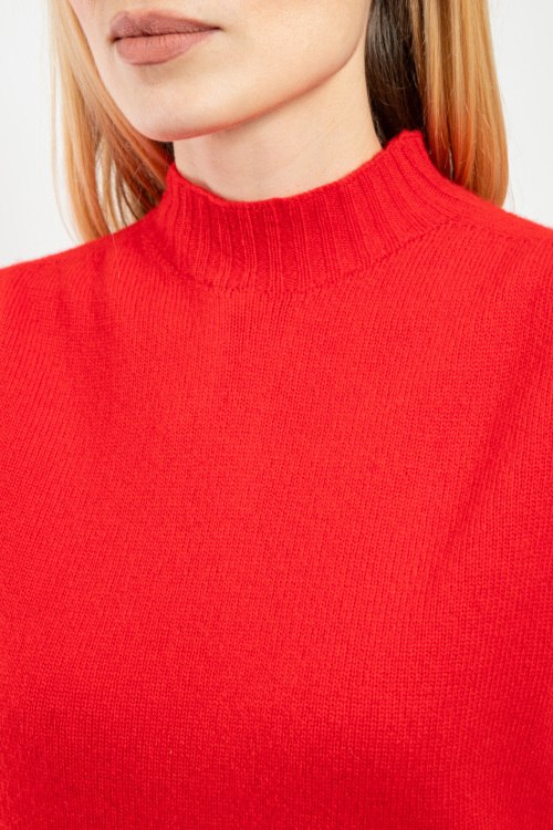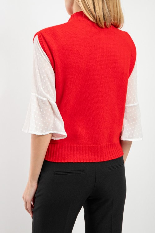 Женский красный джемпер из шерсти и кашемира от Vicolo (Виколо). Модель без рукавов, высокая горловина, нижний край в рубчик, классическая длина.