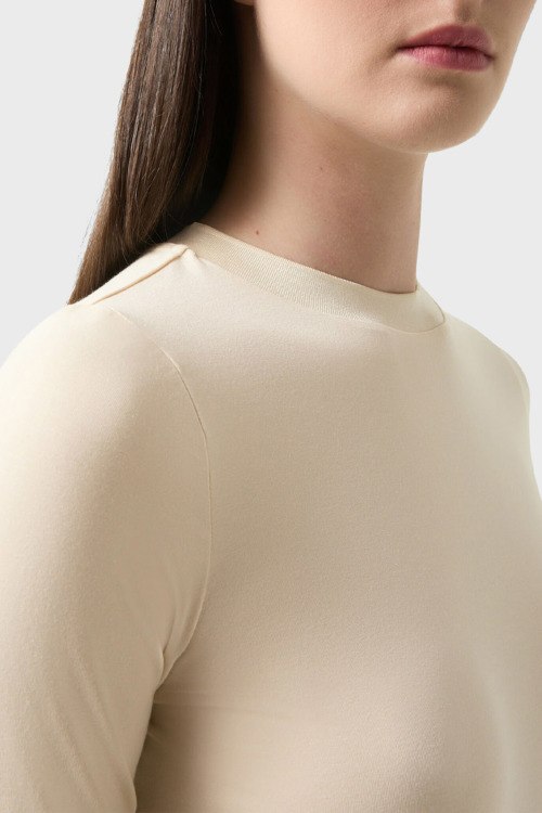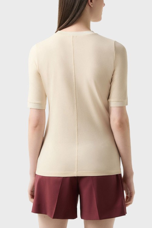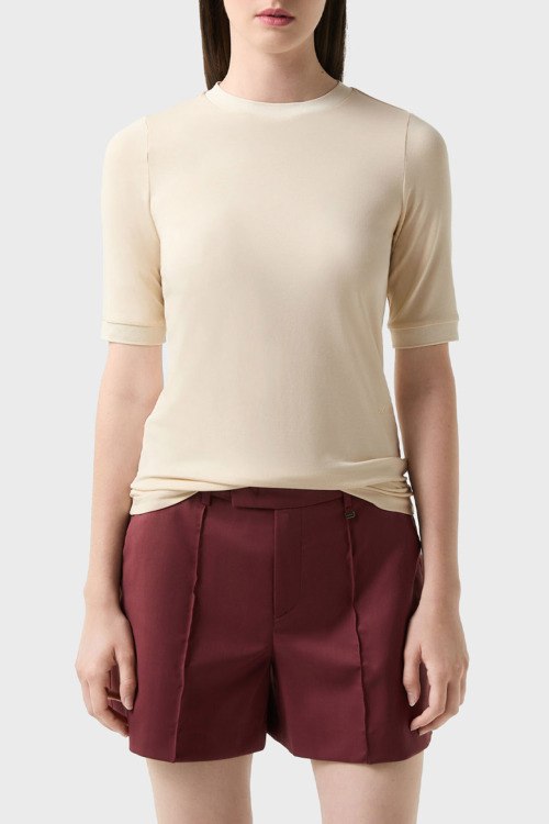 Детали: Женский кремовый джемпер из модала и хлопка Alexi от Bogner (Богнер). Круглый вырез горловины, короткий рукав, классическая длина