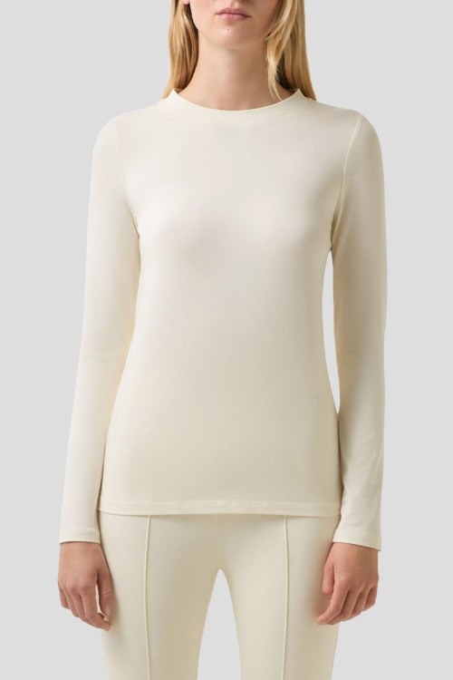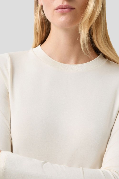 Детали: Женский лонгслив из хлопка и модала Alexi от Bogner (Богнер). Круглый вырез горловины, длинный рукав, классическая длина