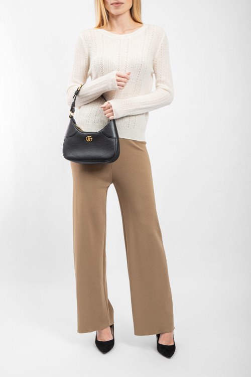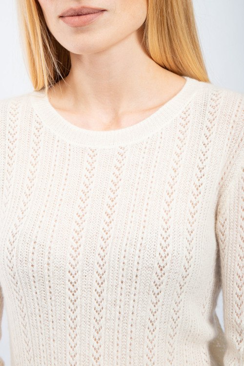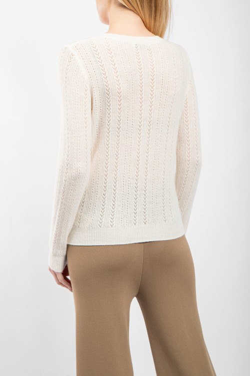 Женский кремовый кашемировый джемпер от Brunello Cucinelli (Брунелло Кучинелли). Вышитый узор, круглый вырез горловины, классическая длина, манжеты и нижний край в рубчик.