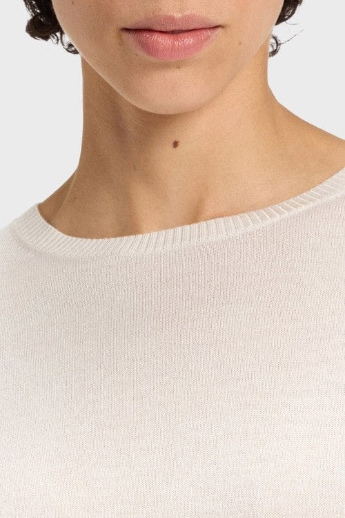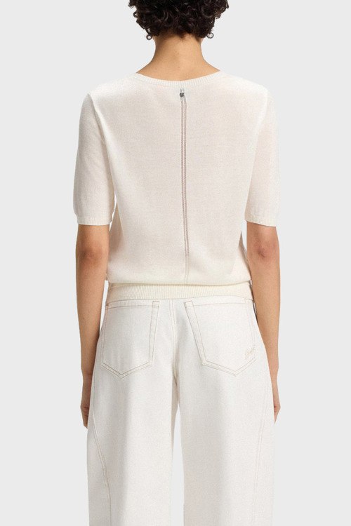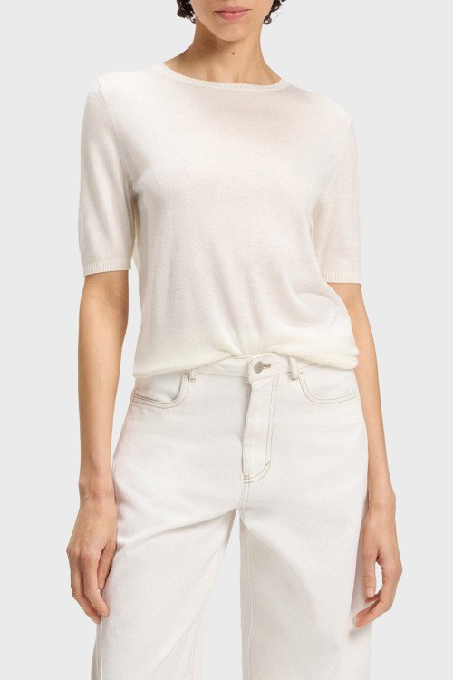 Детали: Женский кремовый трикотажный джемпер C_Fiaffus от Hugo Boss (Хуго Босс). Модель с примесью кашемира, круглый вырез горловины, короткий рукав, классическая длина