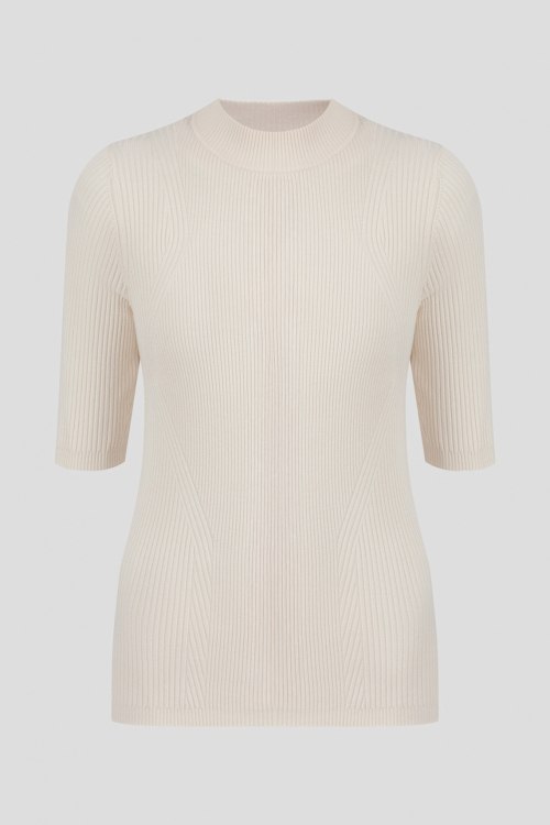 Детали: Женский джемпер молочного оттенка из вискозы от Joop! (Йооп!). Приталенный фасон, круглый вырез горловины, фактурный узор, металлический логотип на спине. Замеры: длина рукава: 3/4, для размера 36 - 30 см, обхват груди: для размера 36 - 70 см, обхват талии: для размера 36 - 54 см, длина изделия по среднему шву спинки от горловины: для размера 36 - 58 см