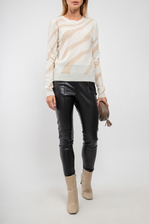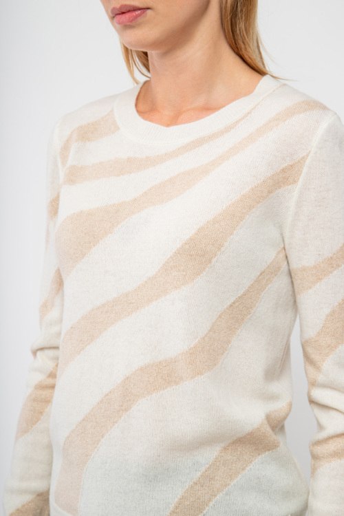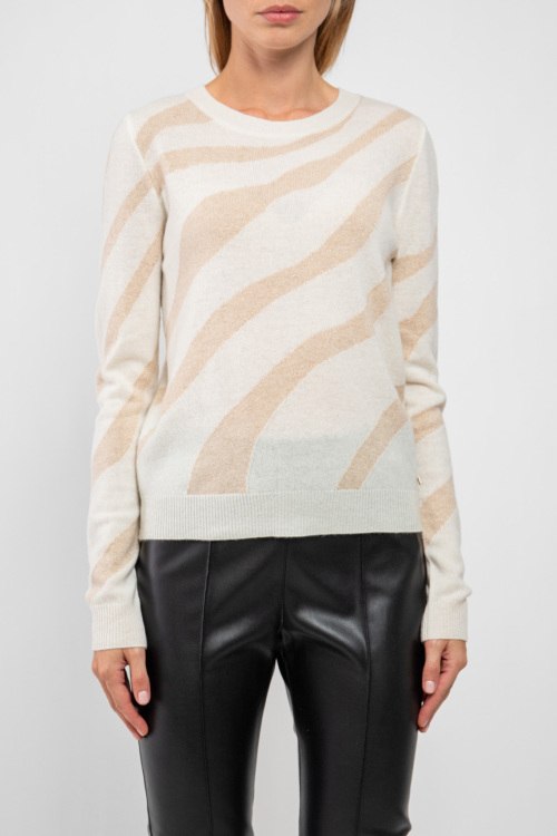 Женский шерстяной джемпер молочного оттенка от Kocca (Кокка). Круглый вырез горловины, классическая длина, манжеты и нижний край в рубчик.