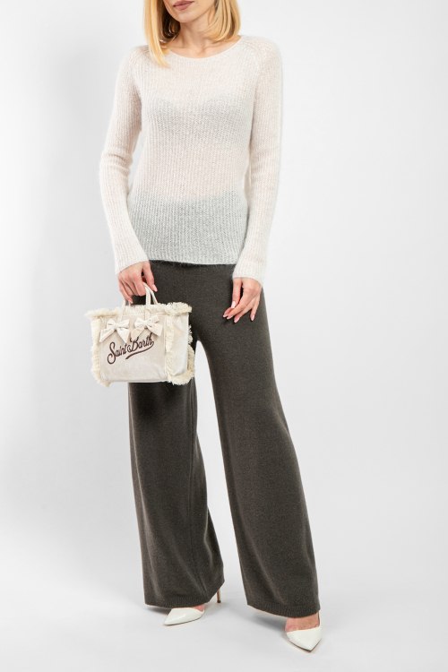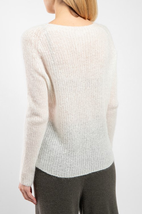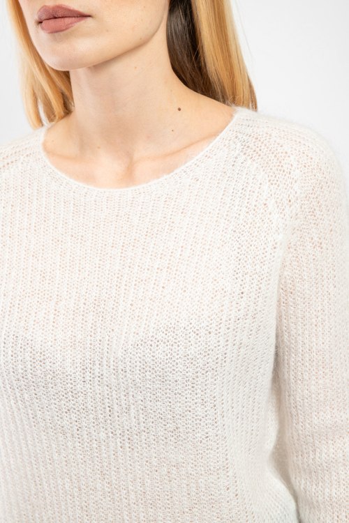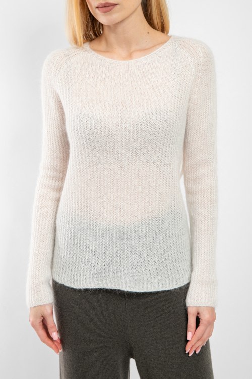 Женский джемпер молочного оттенка из акрила и мохера от Kontatto (Контатто). Полупрозрачная модель, круглый вырез горловины, классическая длина.