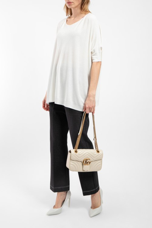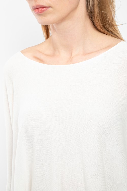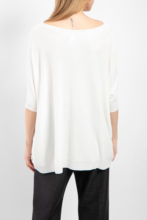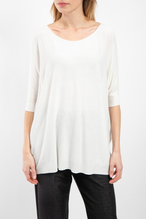 Женский джемпер молочного оттенка из вискозы и полиэстера от Kontatto (Контатто). Модель oversize, вырез горловины "лодочка", рукава 3/4. Замеры для размера UNI: Длина: 61 см, ширина по груди: 82 см, ширина по талии : 81 см.