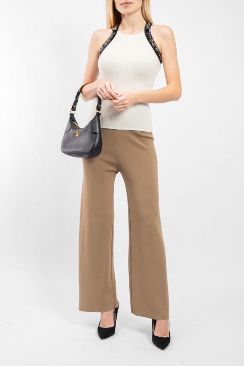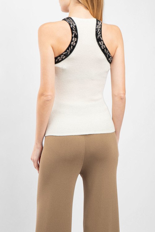 Детали: Женский кремовый топ из шерсти и кашемира от Max Mara (Макс Мара). Модель без рукавов, дизайн в рубчик, декор черными вставками, круглый вырез горловины, классическая длина