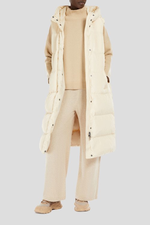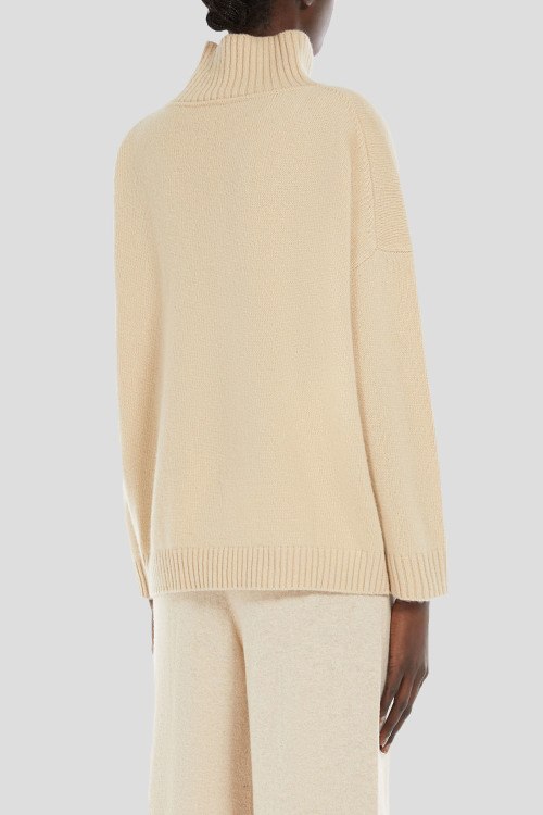 Детали: Женский кремовый шерстяной джемпер от Max Mara (Макс Мара). Высокая горловина, спущенная линия плеча, свободный фасон, классическая длина, манжеты и нижний край в рубчик