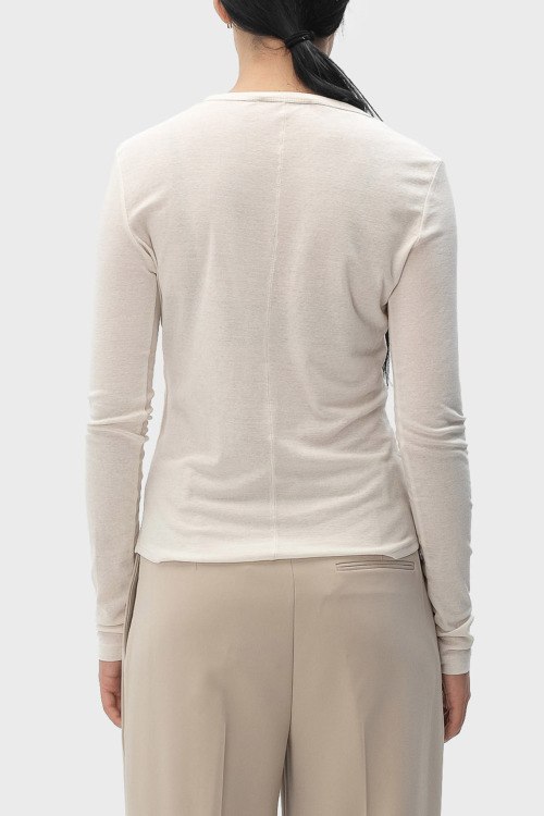 Детали: Женский хлопковый лонгслив молочного оттенка Vincita от Max Mara Weekend (Макс Мара Викенд). Модель из мягкого хлока, круглый вырез горловины, классическая длина