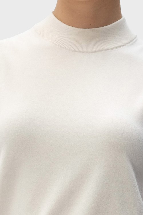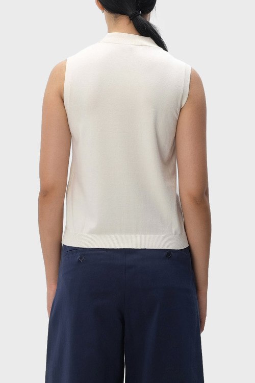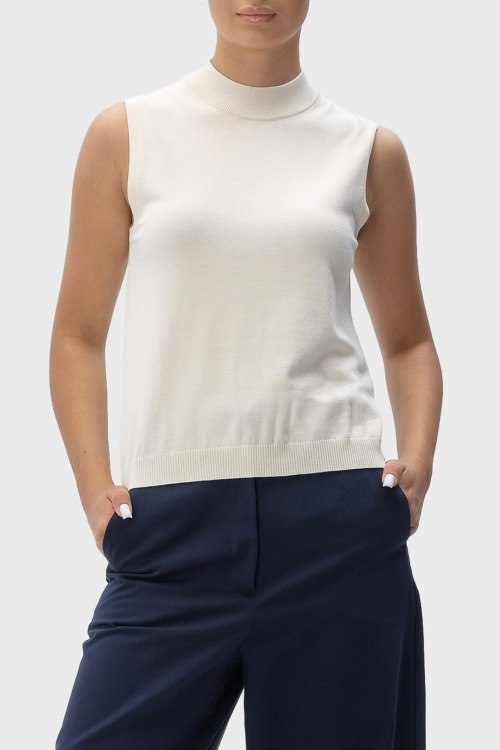 Детали: Женский трикотажный джемпер молочного оттенка Nazione от Max Mara Weekend (Макс Мара Викенд). Модель без рукавов, воротник-стойка, классическая длина