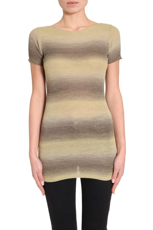 Детали: Комбинированный удлиненный пуловер с коротким рукавом, оригинальный принт