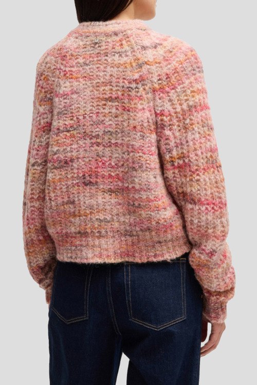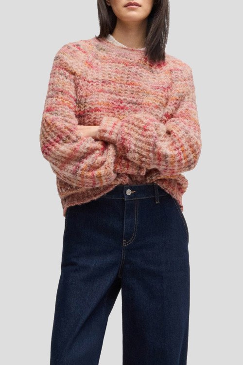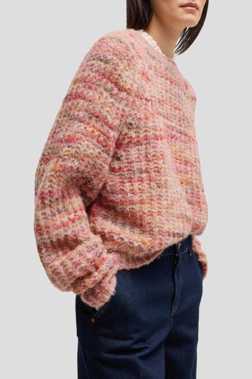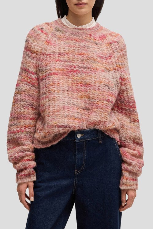 Детали: Женский розовый джемпер из шерсти альпаки и полиамида от Hugo Boss (Хуго Босс). Круглый вырез горловины, дизайн с узором, длинные рукава-реглан