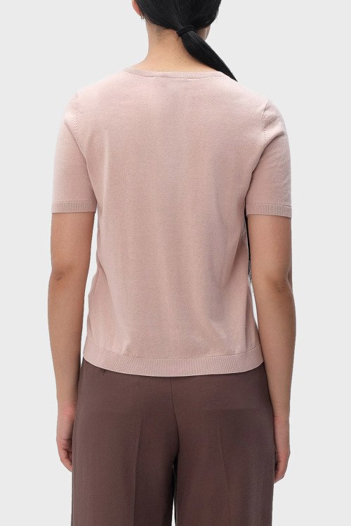 Детали: Женский пудровый джемпер из шелка и хлопка Аgro от Max Mara Weekend (Макс Мара Викенд). Круглый вырез горловины, короткий рукав, классическая длина