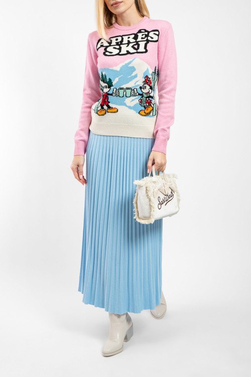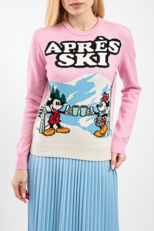 Женский розовый джемпер Aprеs Ski из шерстяного микса от Mc2 Saint Barth (Mc2 Сент Барт). Классическая длина, круглый вырез горловины, длинные рукава, дизайн с принтом, манжеты и низ изделия на трикотажной резинке.