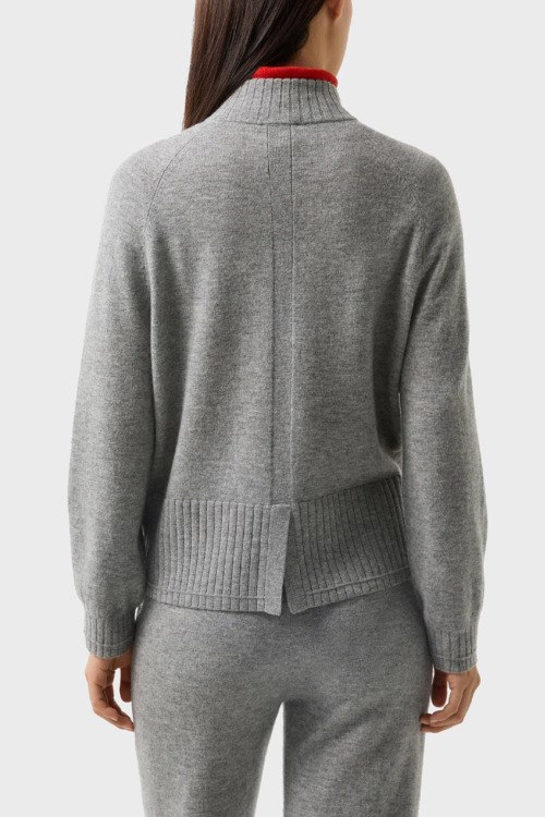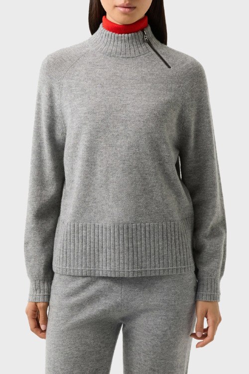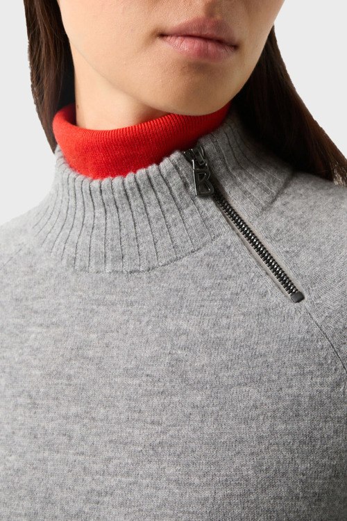 Детали: Женский серый шерстяной джемпер Lyrica от Bogner (Богнер). Воротник-стойка с застежкой на молнию, классическая длина, ребристые манжеты и нижний край