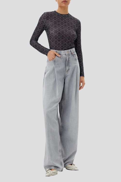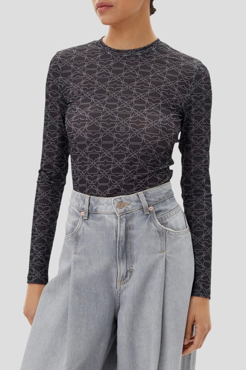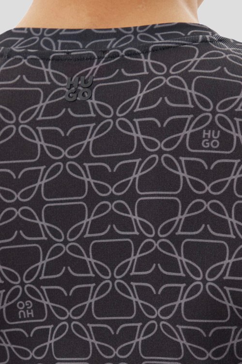 Детали: Женский темно-серый лонгслив Diralina от Hugo by Hugo Boss (Хуго бай Хуго Босс). Узор по всей поверхности, круглый вырез горловины, классическая длина