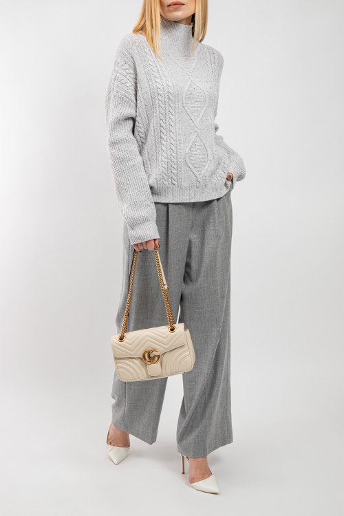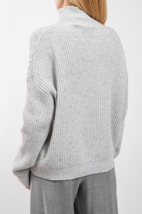 Женский светло-серый шерстяной джемпер Favore от Max Mara Leisure (Макс Мара Лэжэ). Комбинированный вязаный узор, высокая горловина, спущенная линия плеча, классическая длина.