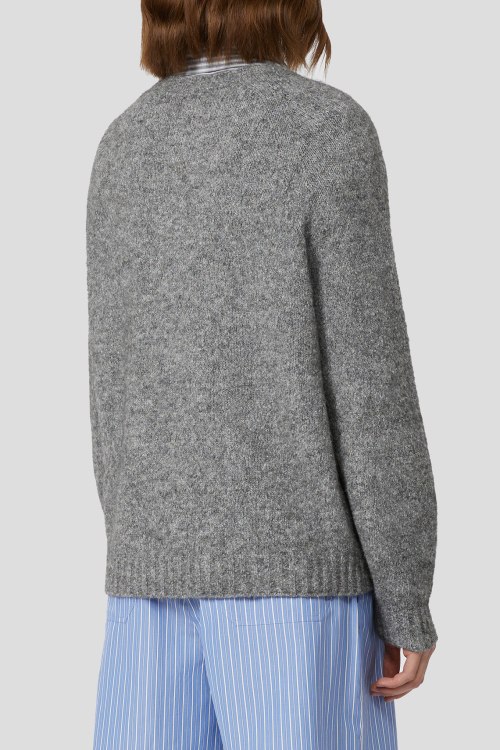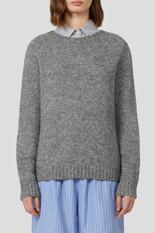 Детали: Женский серый джемпер из альпаки Ghiacci от Max Mara Weekend (Макс Мара Викенд). Классическая вязка, круглый вырез горловины, классическая длина, ребристые манжеты и нижний край
