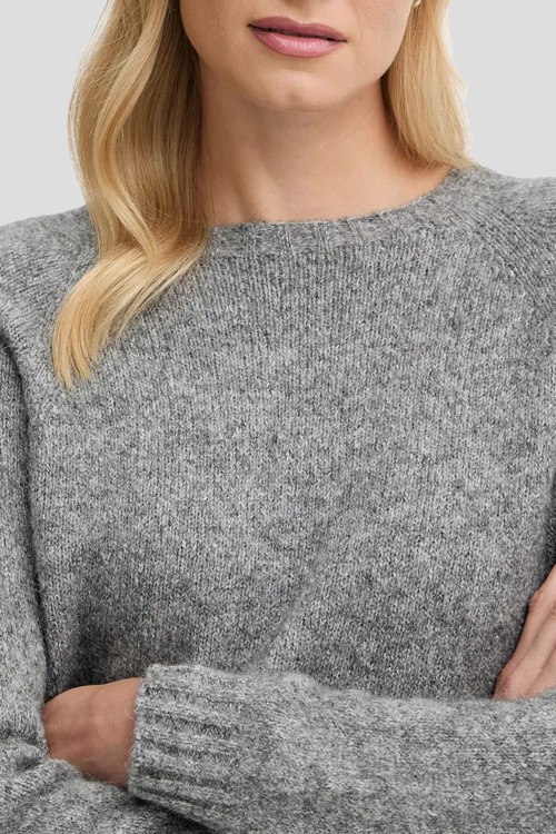 Детали: Женский серый джемпер из альпаки Ghiacci от Max Mara Weekend (Макс Мара Викенд). Круглый вырез горловины, классическая длина, ребристые манжеты и нижний край