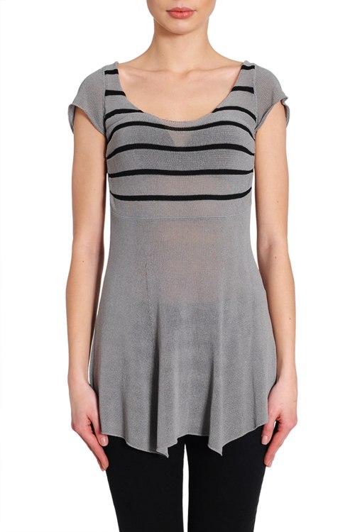 Детали: Удлиненная кофта без рукавов и с круглым вырезом декольте, асимметричный крой
