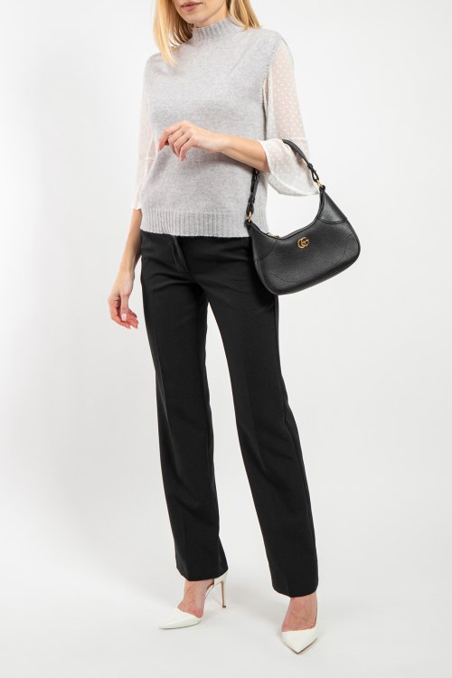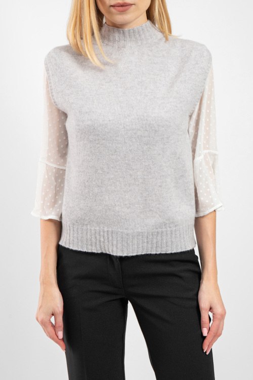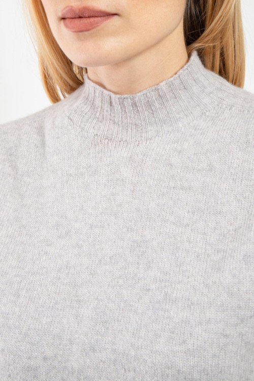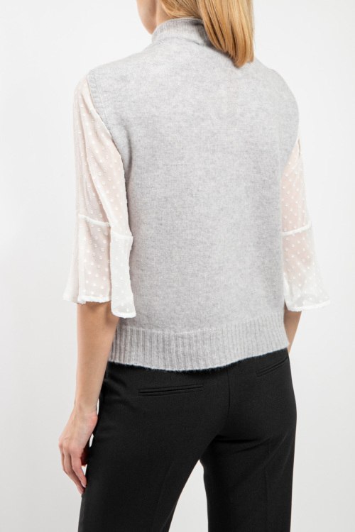Женский серый джемпер из шерсти и кашемира от Vicolo (Виколо). Модель без рукавов, высокая горловина, нижний край в рубчик, классическая длина.