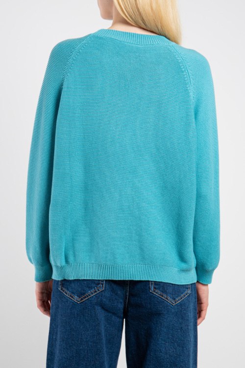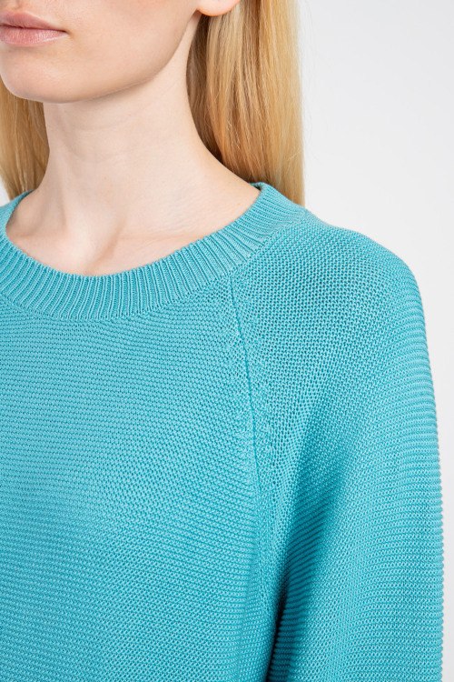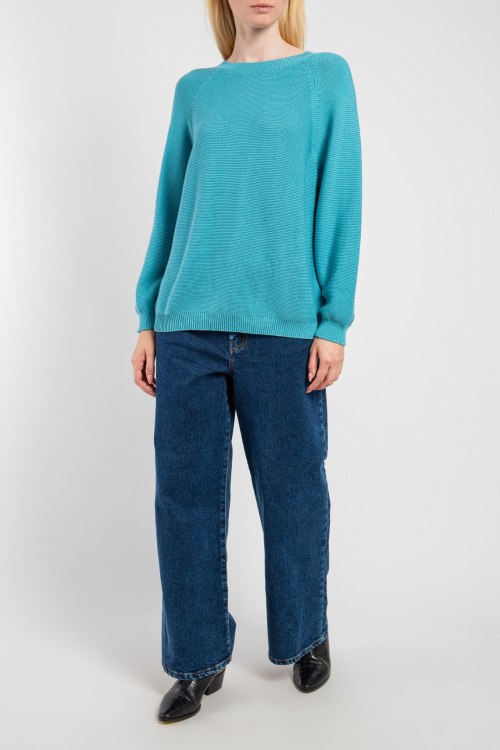 Детали: Женский голубой джемпер из хлопка от Max Mara (Макс Мара). Классическая длина, круглый вырез горловины, длинные рукава, трикотажная резинка на манжетах и по низу изделия