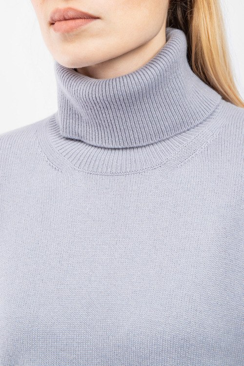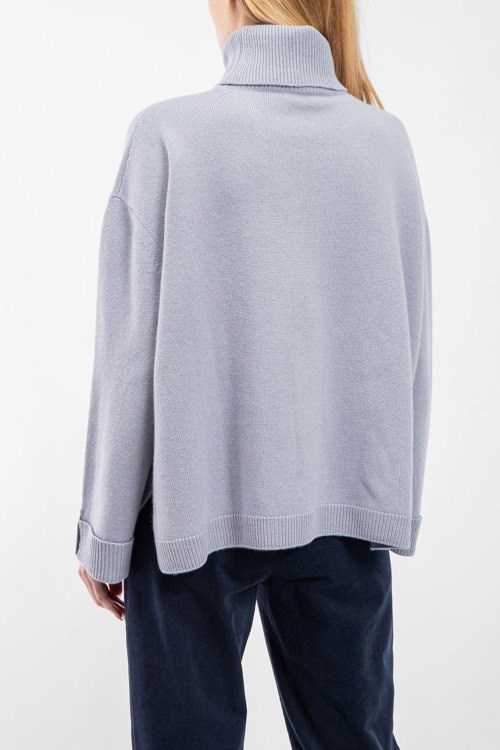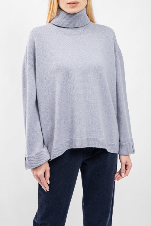 Женский бледно-сиреневый джемпер из шерсти и шелка от Panicale Cashmere (Паникале Кашемир). Модель с примесью кашемира, высокая горловина, фасон oversize, манжеты и нижний край в рубчик.