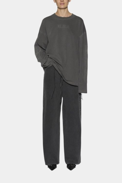 Детали: Женский темно-серый хлопковый лонгслив Sott Boyfriend от Ksubi (Ксуби). Модель oversize, логотип на груди и на рукавах, круглый вырез горловины, удлиненная длина