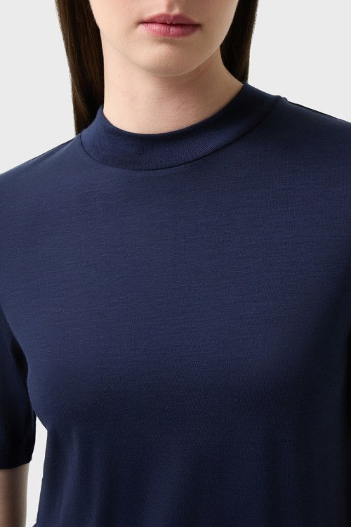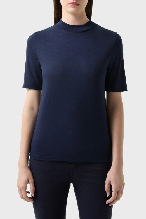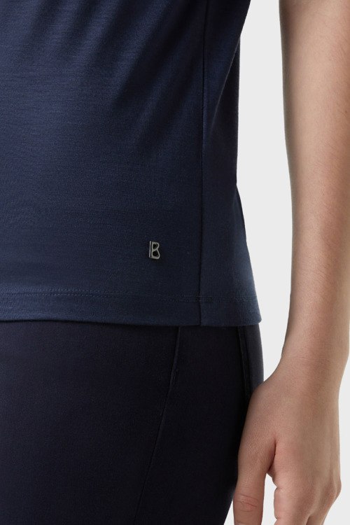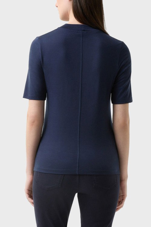 Детали: Женский темно-синий шерстяной джемпер Willow от Bogner (Богнер). Круглый вырез горловины, короткий рукав, классическая длина