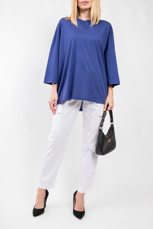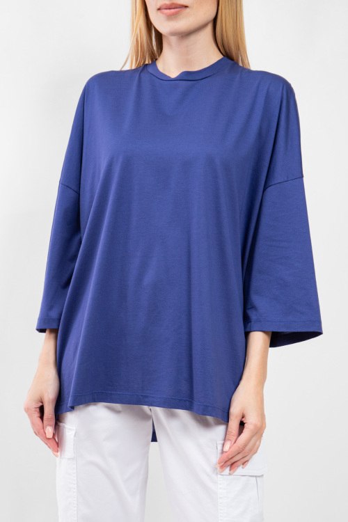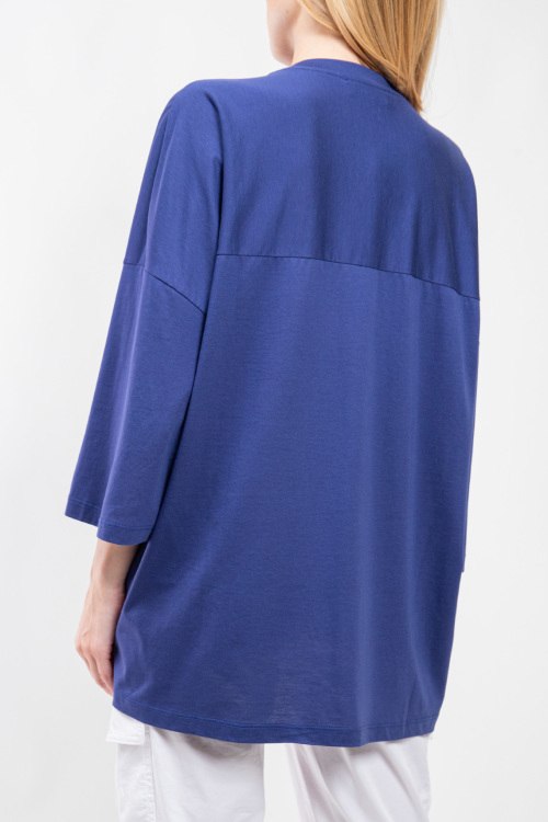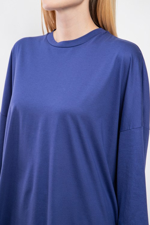 Женский темно-синий джемпер из хлопка и модала от Clothe (Клозе). Фасон oversize, круглый вырез горловины, укороченный широкий рукав, удлиненная длина. Размер вещи на фото: M, длина спереди: 66 см, ширина по груди: 51 см, ширина по талии: 51 см, длина рукава: 23 см, ширина рукава: 19 см.