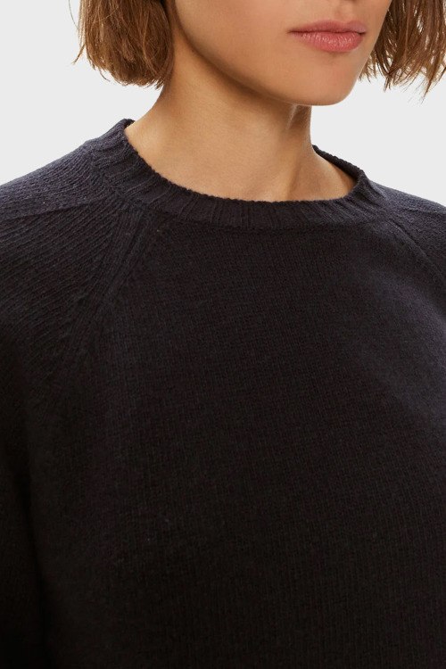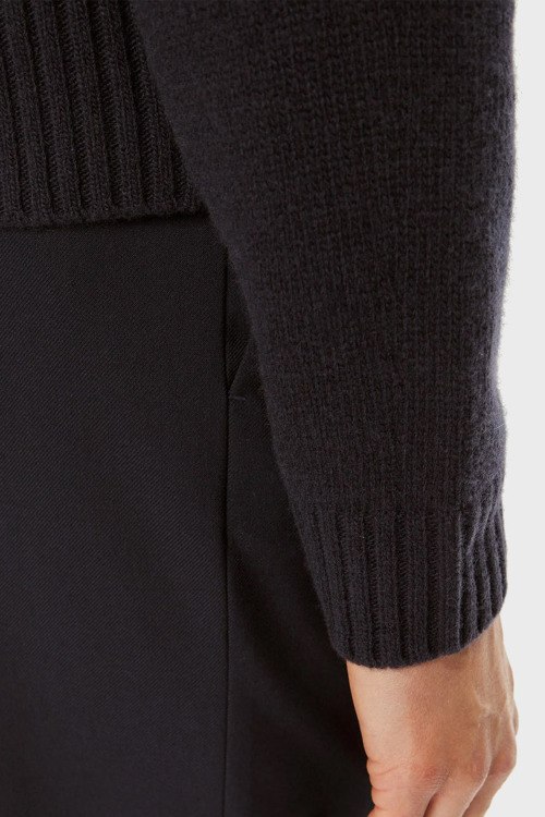 Детали: Женский темно-синий шерстяной джемпер от Max Mara Weekend (Макс Мара Викенд). Круглый вырез горловины, рукава-реглан, трикотажная резинка на манжетах и по низу изделия