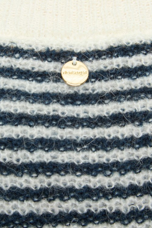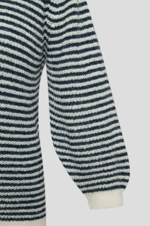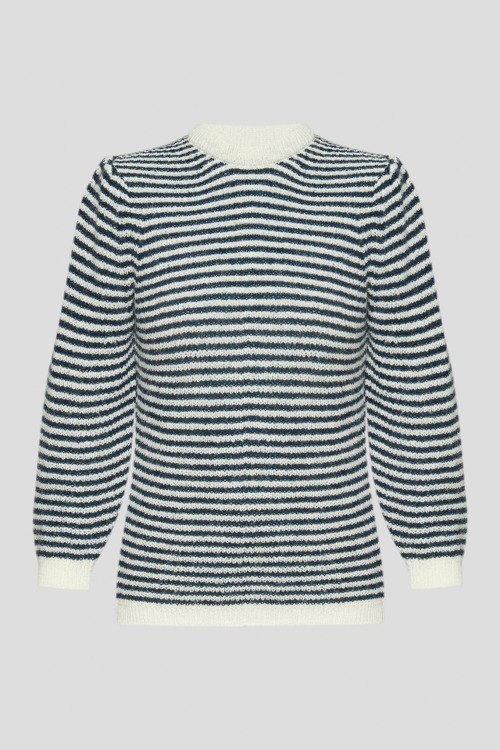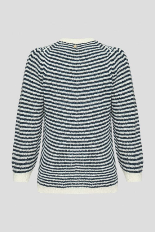 Детали: Женский темно-синий джемпер из акрила и шерсти от Rich & Royal (Рич энд Роял). Классическая вязка, полоска по всей поверхности, круглый вырез горловины, длинный рукав. Длина рукава: 3/4, для размера S - 43 см, обхват груди: для размера S - 100 см, обхват талии: для размера S - 100 см, длина изделия по среднему шву спинки от горловины: для размера S - 57 см